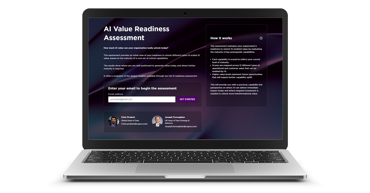 Crucially, Capco’s approach creates a tangible link between capability investment and business value. It is designed for a fast-moving AI landscape, helping organizations assess whether today’s capabilities are still fit for purpose as technology, regulation, and expectations change.